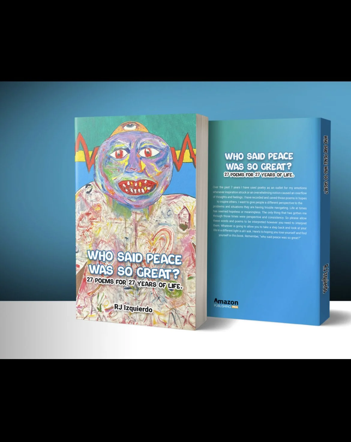 “Who said Peace was so Great?” Is a poetry book written by RJ Izquierdo. It is a perfect example of what we aim to achieve here at Outta Pocket Productions. A meaningful, easily accessible, quality piece of art that can truly have a positive impact in peoples lives. The book is made up of 27 poems that the author has written over the course of his life. He released the book on his 27th birthday as a “celebration of life”. It is available online anywhere major books are sold.